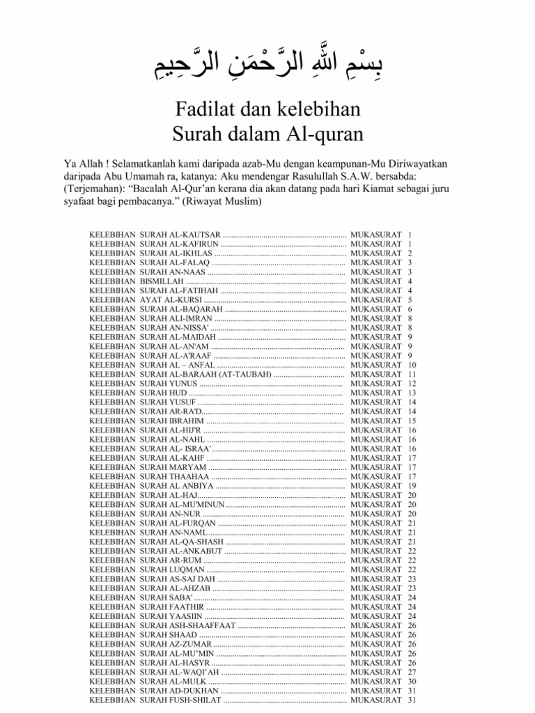 Kelebihan Surah Dalam Al Quran Pdf